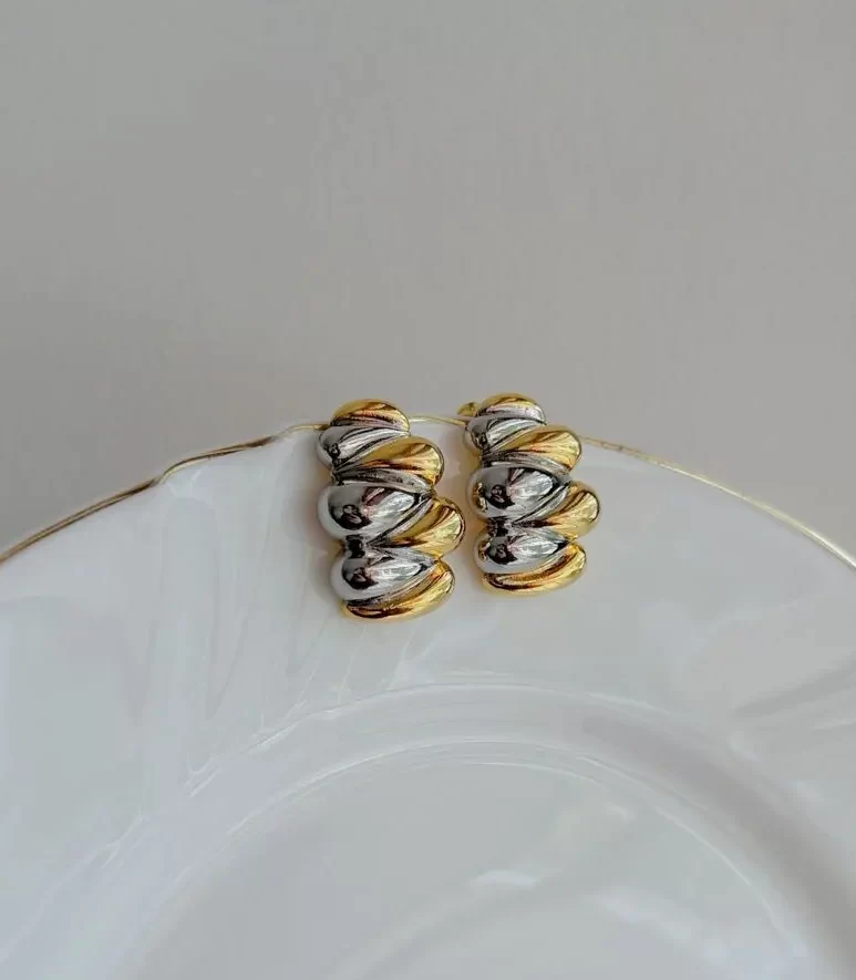Diseño de estilo chunky que destaca por su elegante combinación bitono en oro y plata. Su estructura ondulada y voluminosa, fabricada en acero inoxidable de alta calidad, ofrece un brillo excepcional y una durabilidad superior, siendo el accesorio moderno e hipoalergénico perfecto para quienes buscan una pieza sofisticada que resalte en cualquier ocasión.