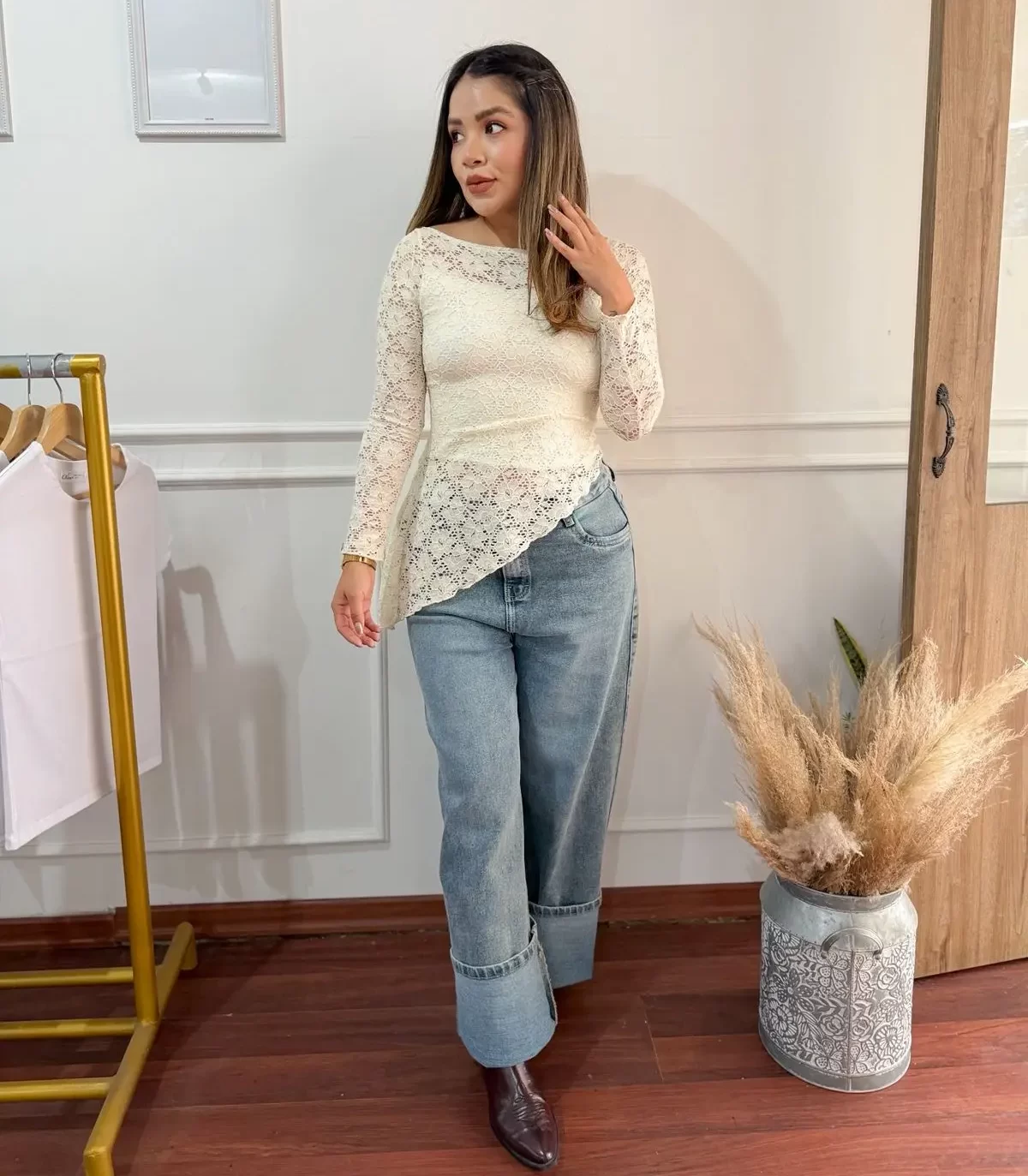 Añade un toque de romanticismo y luz a tu clóset con nuestra hermosa blusa ‘Aria’ en tono crema suave. Esta prenda está confeccionada en una delicada tela de encaje con diseño floral que juega sutilmente con las transparencias, creando un estilo etéreo y muy femenino.