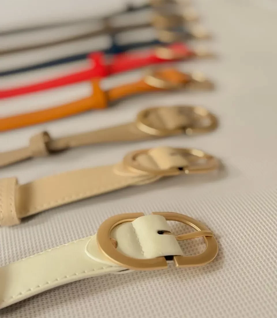Diseñado en acero inoxidable con hebilla dorada, combina estilo y versatilidad. Disponible en diferentes colores, es el accesorio perfecto para elevar cualquier look con un toque sofisticado.